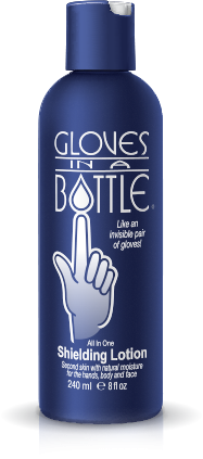 Nu, Gloves in a Bottle patrunde in stratul exterior al pielii si este indepartat doar prin procesul de exfoliere a pielii. De fapt Gloves in a Bottle a fost creat sa protejeze pielea impotriva uscarii in urma spalarii repetate a mainilor sau a expunerii la apa si detergenti. Doctorii, stomatologii, asistentele si alte persoane cu profesii similare, care se spala foarte des pe maini, sunt protejati de aceasta lotiune.