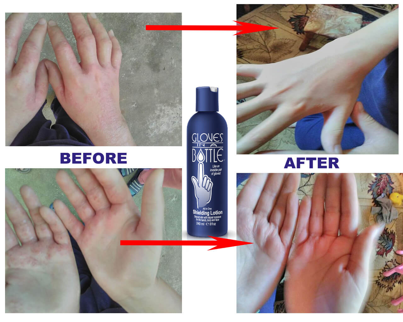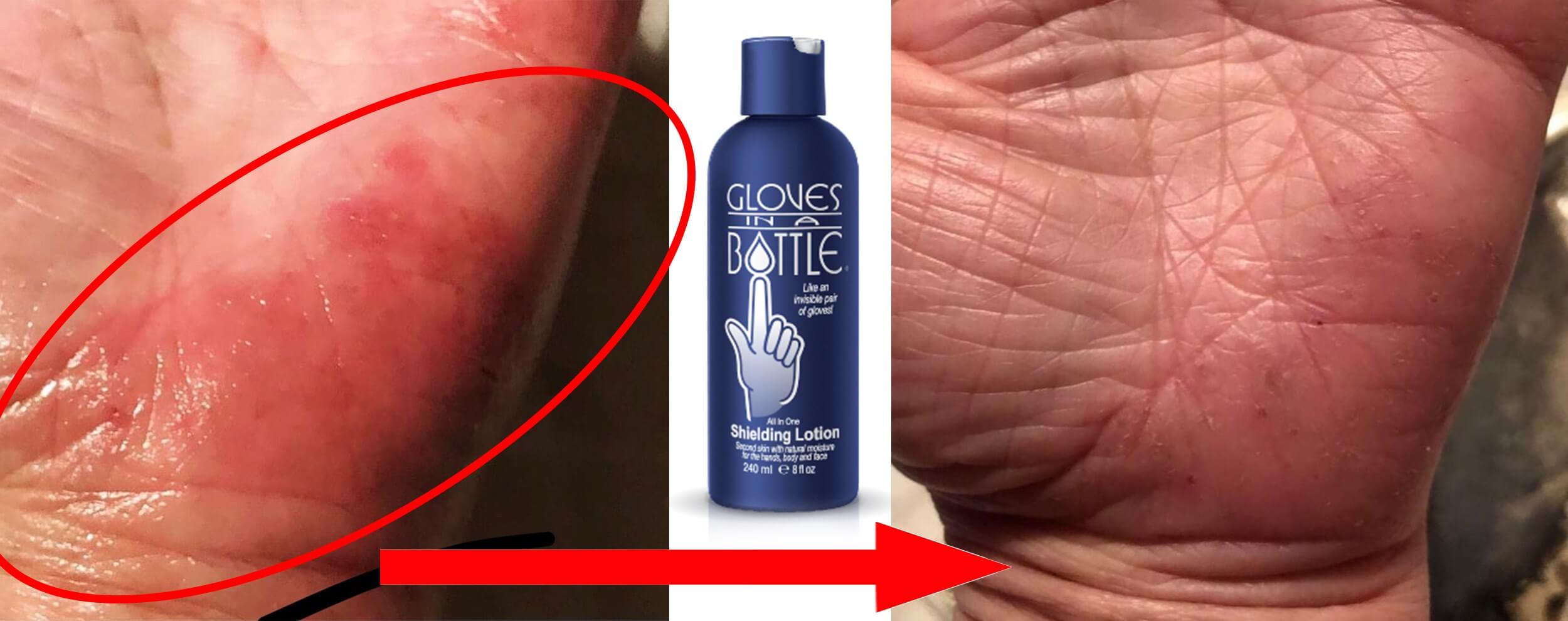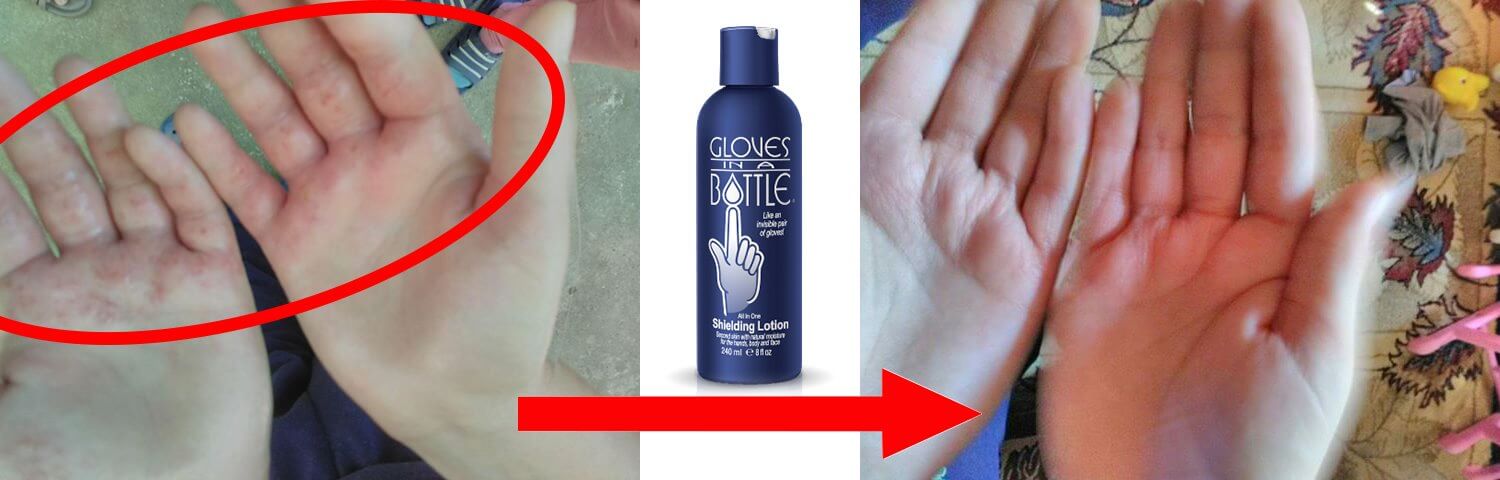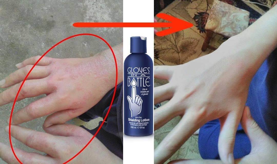 Gloves in a Bottle, in proporție de 100%, NU conține parabeni, ftalati, triclosan, lauril sulfat de sodiu ( SLS), lauret sulfat de sodiu ( SLES), formaldehidă, toluen, propilena, glicol, salicilati, gluten, latex, lactați, grâu, soia, mazăre, porumb, produse animale, arome adăugate, colorant, alune sau alte tipuri de nuci.