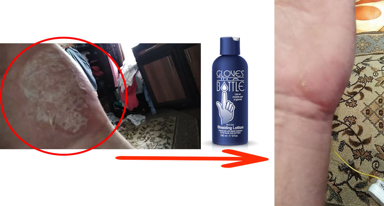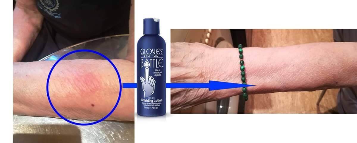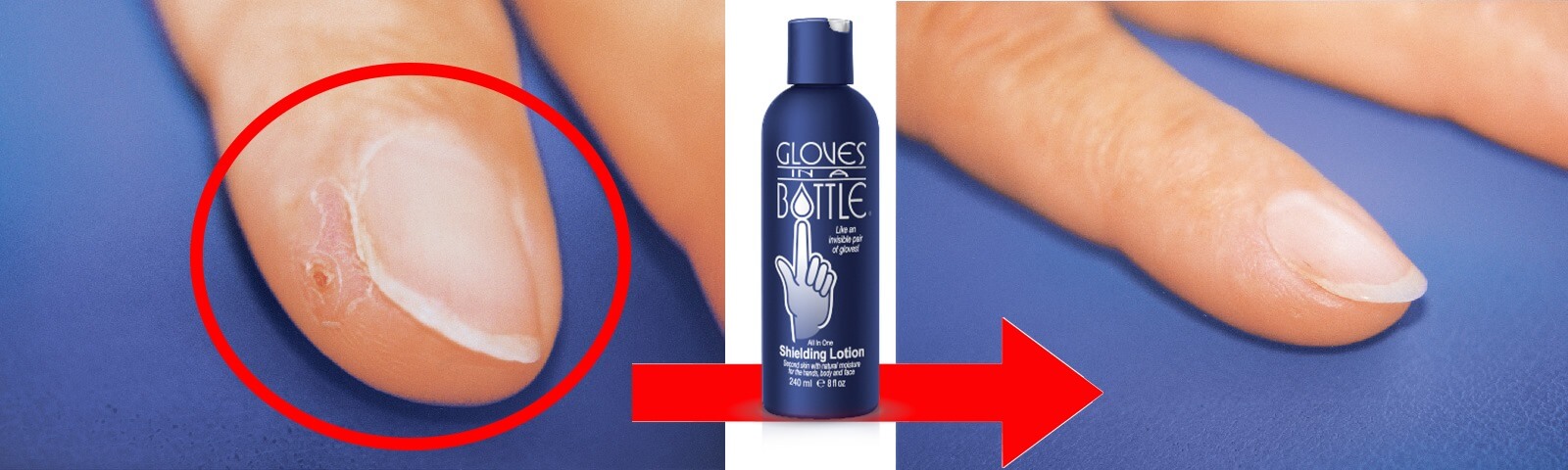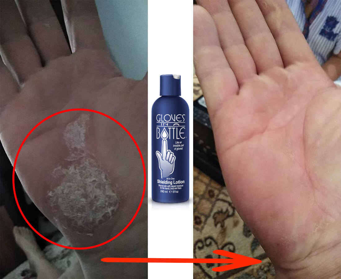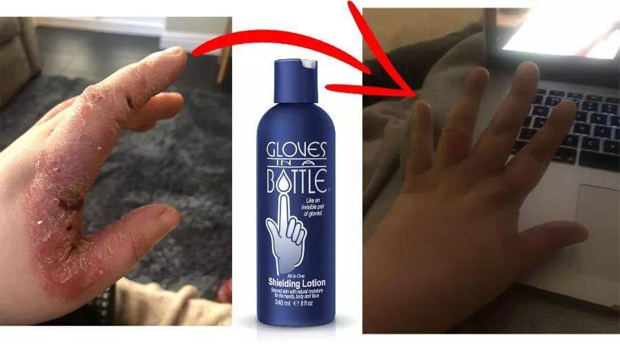 Gloves in a Bottle, in proporție de 100%, NU conține parabeni, ftalati, triclosan, lauril sulfat de sodiu ( SLS), lauret sulfat de sodiu ( SLES), formaldehidă, toluen, propilena, glicol, salicilati, gluten, latex, lactați, grâu, soia, mazăre, porumb, produse animale, arome adăugate, colorant, alune sau alte tipuri de nuci.