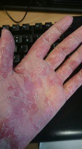 Erupţiile pielii mele, unele chiar foarte severe apar din cauza unei alergii la formaldehidă – compus chimic ce se regăseşte în hârtie şi produse de papetărie, în hainele noi, în materialele sintetice, în produsele de curăţenie, chiar şi în cosmetice şi loţiuni! Eu lucrez cu hârtie frecvent şi pentru perioade lungi de timp.